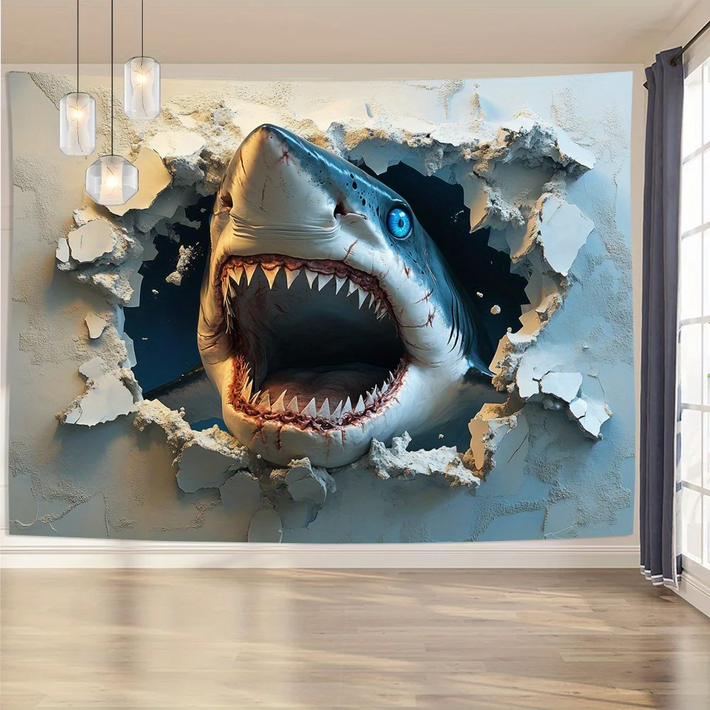 1pc 3D stereo visual effects big shark background cloth, living room, bedroom, office, party decoration tapestry creative gifts